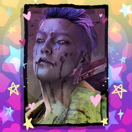 my first primary selfship! as soon as i was told that they were adding a flashy idol guy to the roster, i was immediately interested in him. this interest never went away even several months after his DLC dropped and then i happened to learn about selfshipping not too long after this; all of the terminology that i learned just so happened to describe exactly what i felt for him, and the rest is history! he and vanitas are very cat and mouse; chasing each other because they both can't get enough of the thrill of doing so. vanitas was an intense no-spin fanboy from their debut up until the accident that propelled trickster into his solo career. the obsession is mutual, but they aren't aware that they're both just as lovesick! vanitas' lack of fear around his favorite idol despite what he's capable of is what ends up bringing them closer to each other.